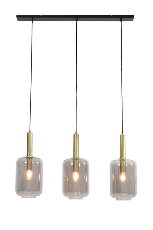 Hanging lamp 3L 100x22x32 cm LEKAR ant. bronze+smoked glass